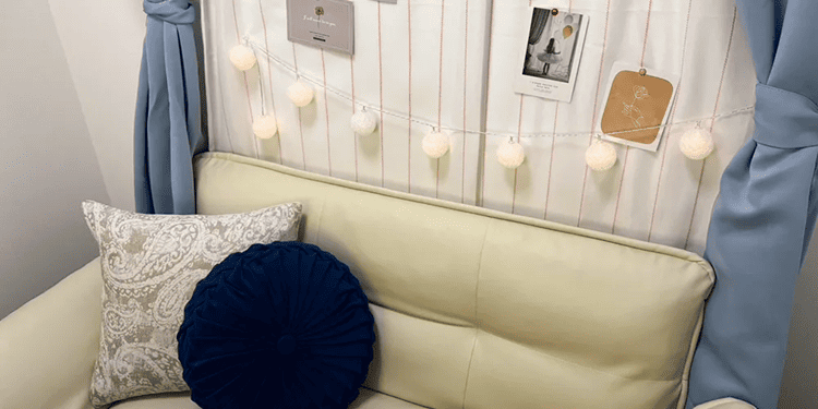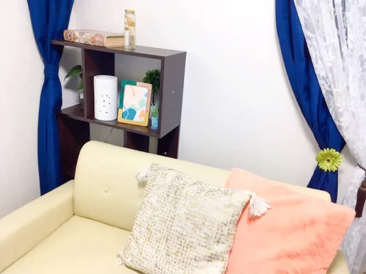 可愛いインテリアやソファ、照明にもこだわりがあり、自分の部屋のようにリラックスできる雰囲気です。着替えスペースやメイクルームも完備されており、プライバシーを守りながら快適に過ごせます。