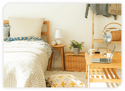 清潔感があり、プライバシーが守られた完全個室なので、人目を気にせず自分らしく働けます。可愛い装飾やアロマなど、心が落ち着く空間づくりにもこだわっており、長時間でも快適に過ごせる環境です。