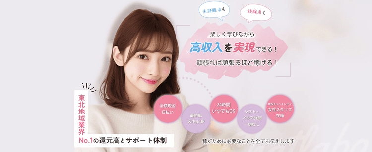 女性スタッフが24時間体制でサポートしてくれるため、未経験でも安心して始められます。日払い・ノルマなしで、自分のペースでしっかり稼げる環境です。
