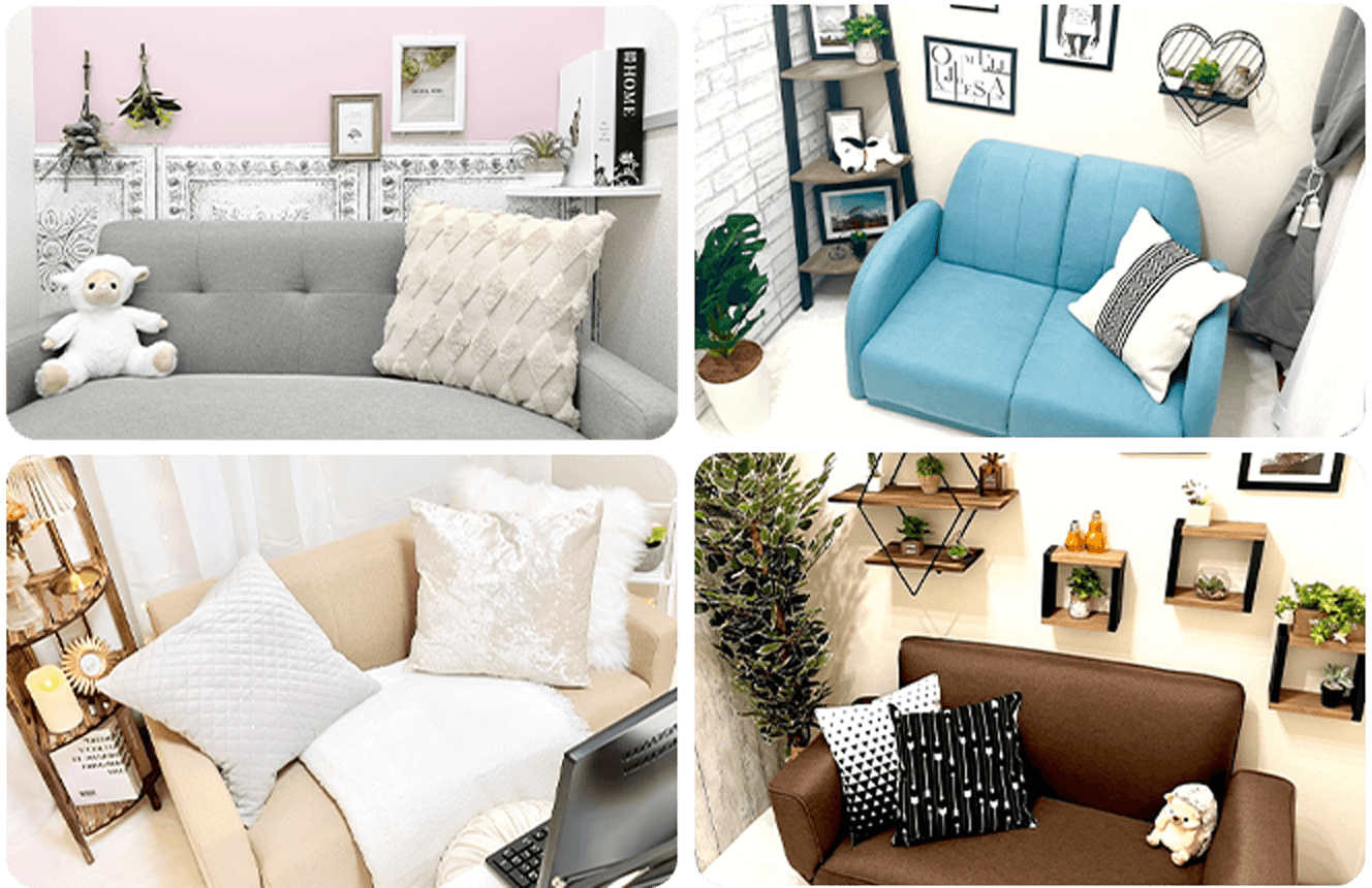 チャットルームは84部屋と非常に多く、かわいい系からシンプル系までさまざまなテイストでデザインされています。清潔感を重視しているので、快適に過ごせますよ。また、防音シートを2重に貼り隣の音が気になりにくいよう工夫されているので、お仕事に集中できます。