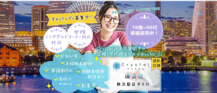 | クリスタル | 通勤:3,000円 | 横浜駅徒歩8分 | 可能 | あり | ・登録5時間後からボーナス ・獲得ポイント別ボーナス |