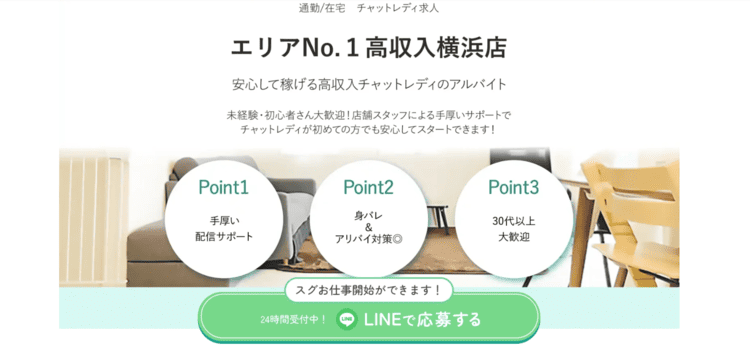 横浜ライブインは、15年以上の長年の運営歴があるチャットレディ事務所です。チャトレ育成の経験豊富なスタッフが在籍しており、「アダルトはしたくない」や「顔出しはNG」など、1人1人の希望を聞きつつ稼げる方法をしっかりと教えてくれます。